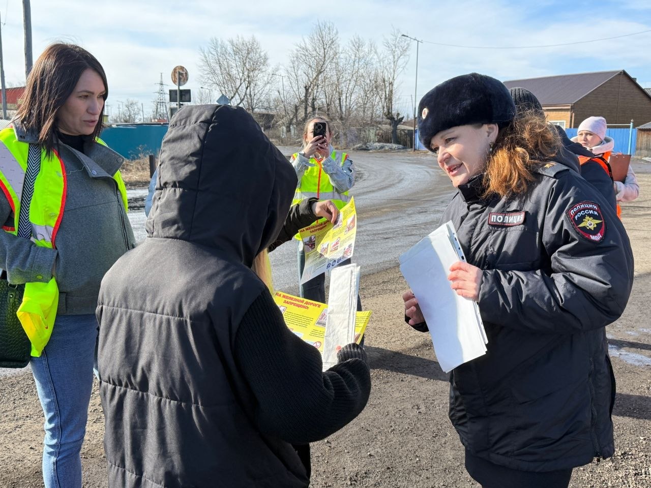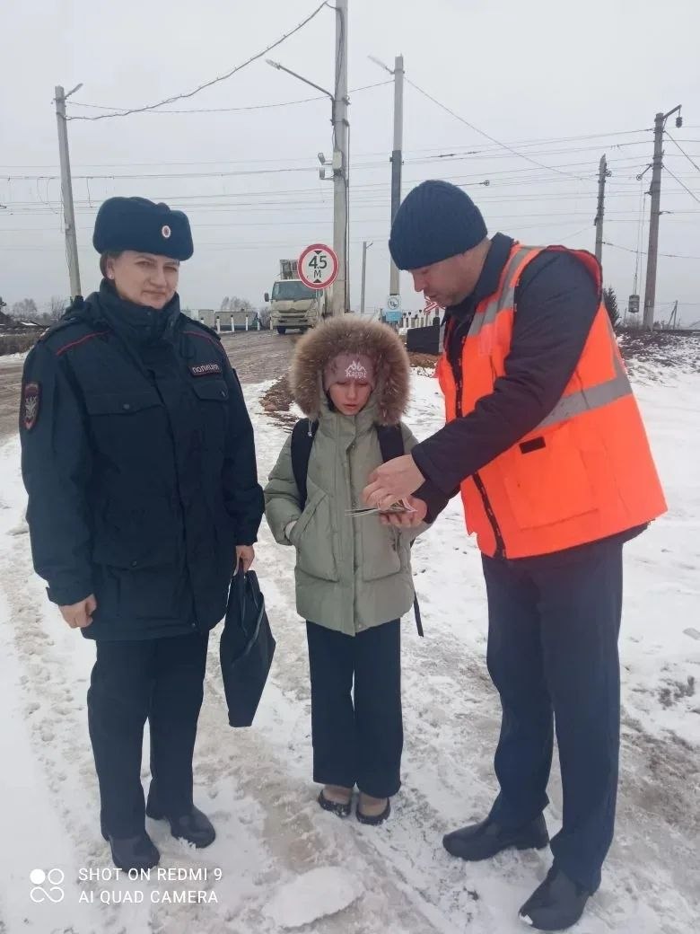 Инспектор по делам несовершеннолетних Тайшетского ЛО МВД России на транспорте Евгения Дмитриева совместно с главным инженером ПЧ-1 Алексеем Король, и ио специалиста по охране труда Жанной Рублёвой провели профилактический рейд на железнодорожном переезде ст. Юрты. Гражданам также выдали памятки-книжки с правилами безопасности на жд, маленькие пассажиры получили в подарок раскраски и кроссворды по тематике.
