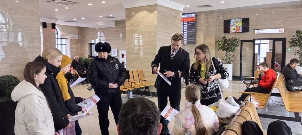 На вокзале станции Иркутск-Пассажирский в рамках начальник отделения по делам несовершеннолетних ЛО МВД России на ст. Иркутск-пассажирский Марина Вотякова совместно с руководством вокзала и учащимися РЖД Лицея №14 провели информационную акцию. Участники акции напомнили пассажирам о безопасном поведении, раздали тематические буклеты.