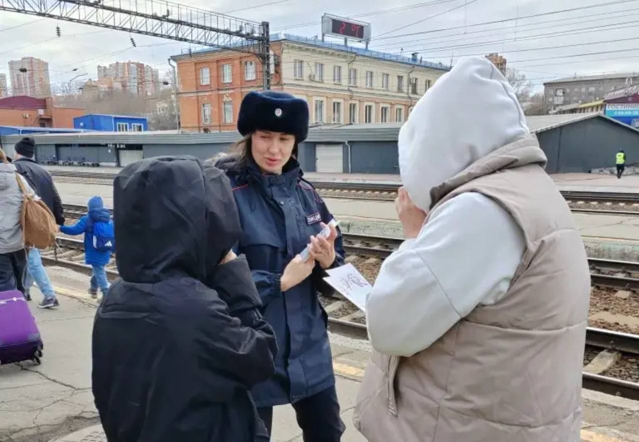 Инспектор отделения по делам несовершеннолетних Восточно-Сибирского ЛУ МВД России на транспорте Мария Горяинова совместно с работниками железной дороги в рамках акции «Безопасный транспорт» провела рейд на железнодорожном вокзале станции Иркутск-пассажирский.