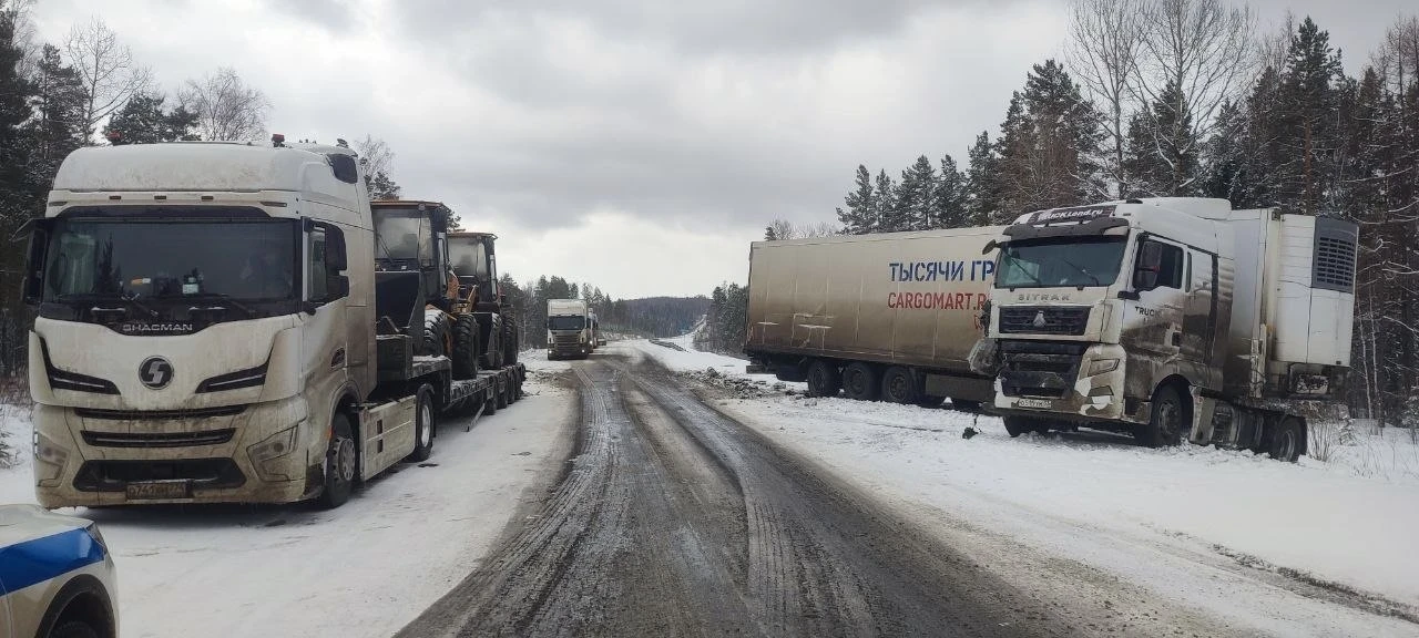 Сегодня около 12 часов 30 минут произошло ДТП. Водитель фуры не справился с управлением и совершил наезд на стоящее грузовое транспортное средство.