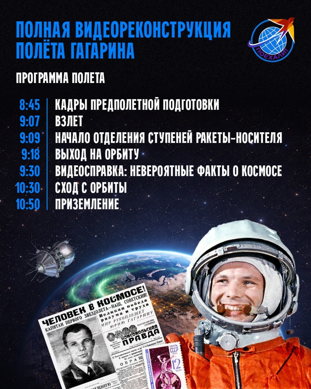 До полета Юрия Гагарина остается меньше суток!