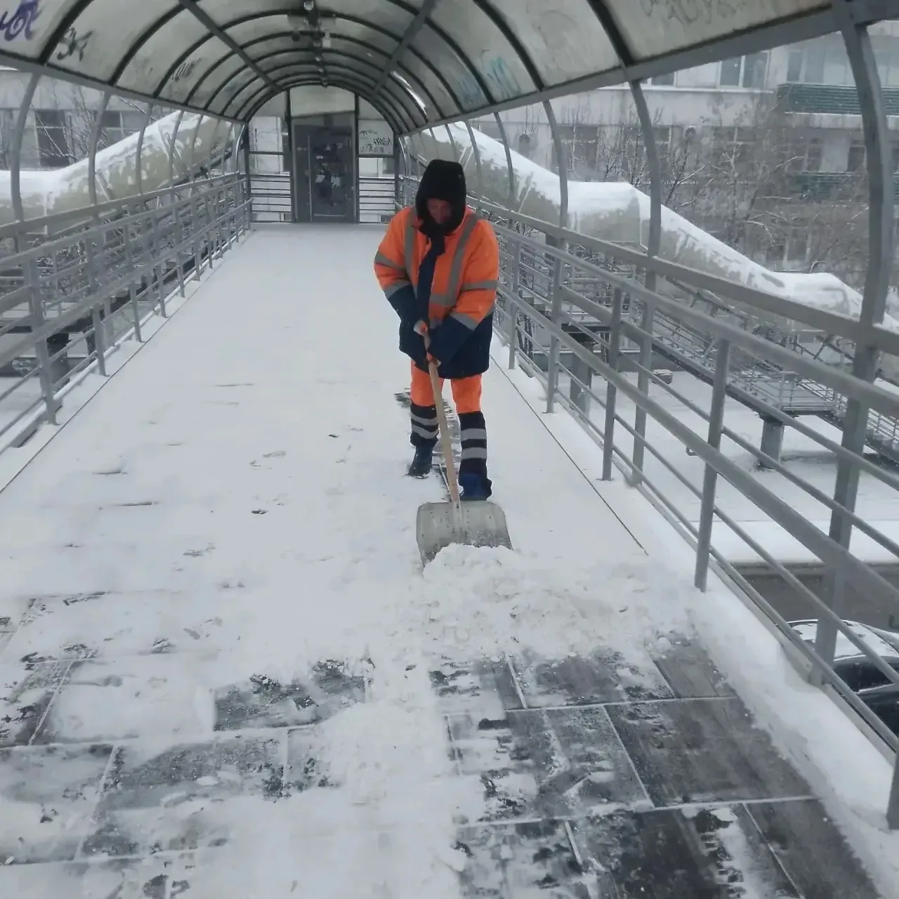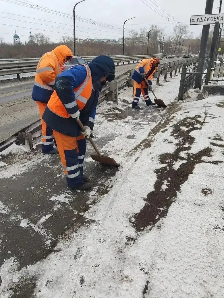 МУП «Служба эксплуатации мостов» убирают снег на мостах и путепроводах.