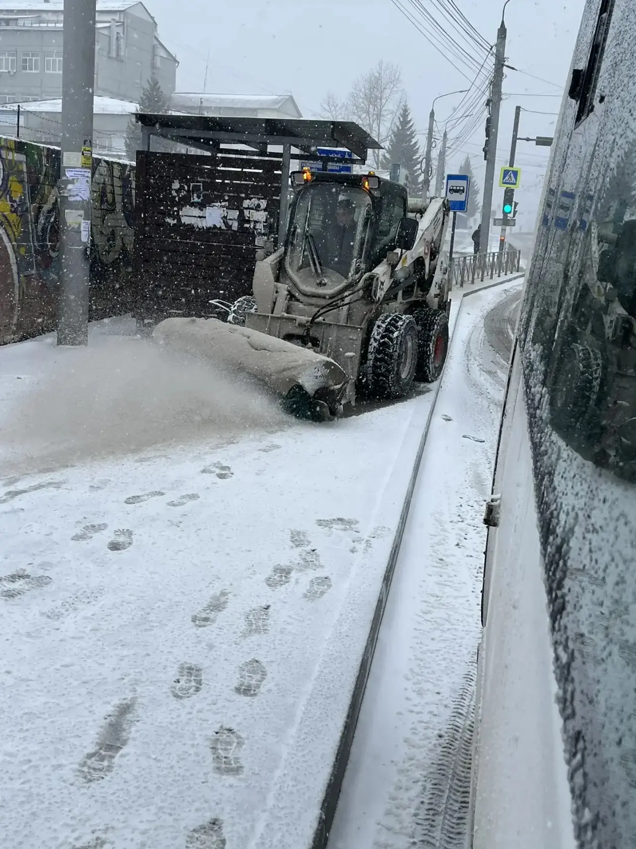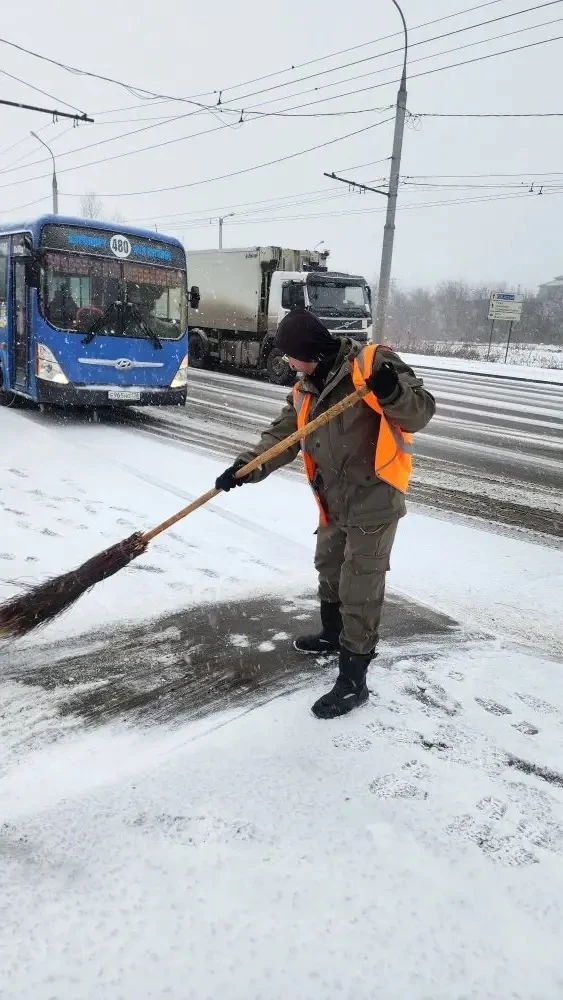 Специалисты и подрядчики МУП «Иркутскавтодор» с самого утра работают во всех районах города. Расчищают тротуары, остановки, в том числе с помощью спецтехники. Также ведется противогололедная обработка проезжей части.
