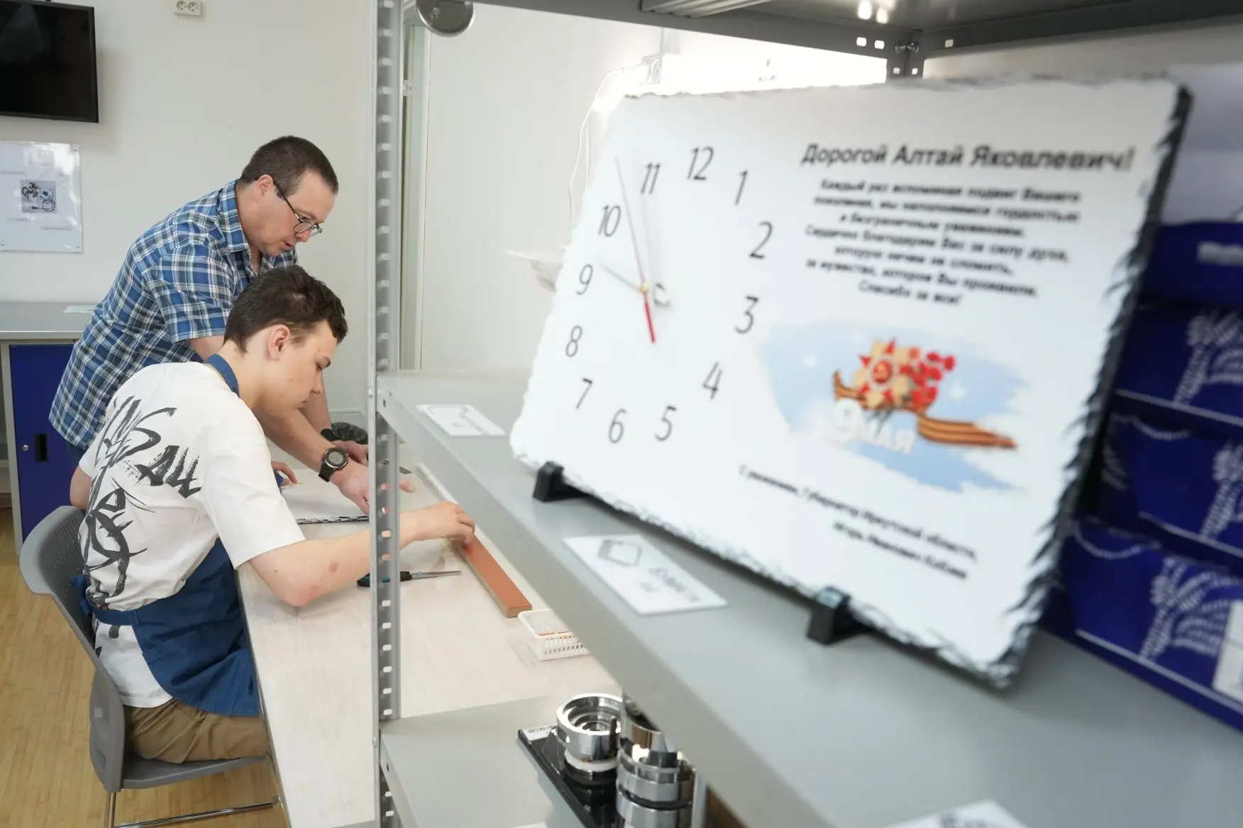 Настольные часы для подарков ветеранам к 9 мая изготавливают инвалиды в отделении социальной занятости в Иркутске
