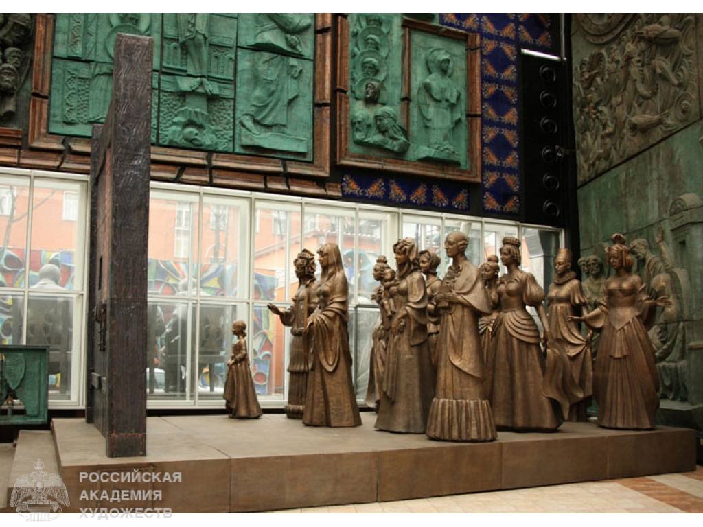 Народный художник РФ создал памятник в 2008 году. Сейчас композиция находится в Москве.