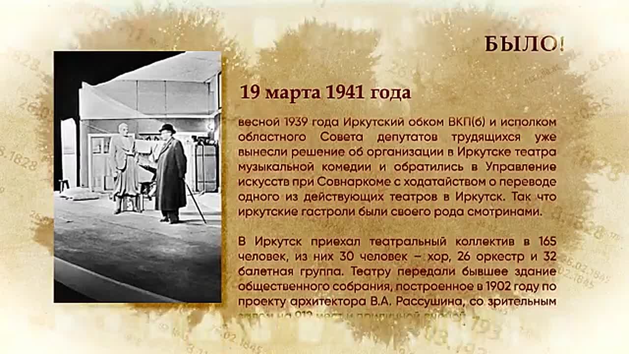 Осенью 1940 года Горьковский театр музыкальной комедии приехал на гастроли в Иркутск. А уже 19 марта 1941го было принято судьбоносное решение остаться здесь и стать Иркутским областным театром музыкальной комедии.