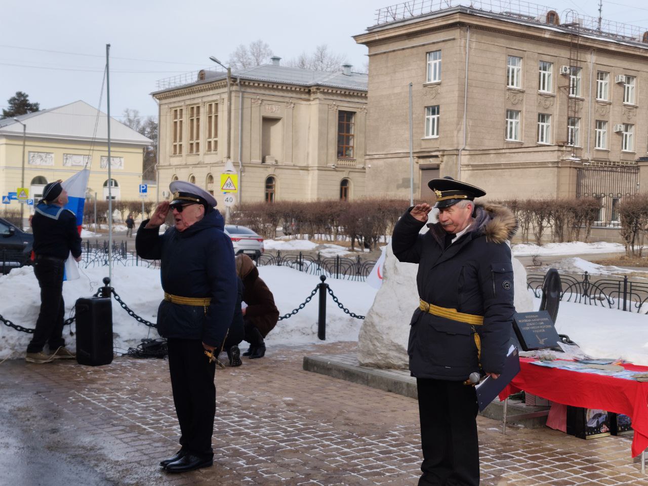 Торжественный митинг, посвященный 120-летию подводного флота России, провели у памятного знака военным морякам-ангарчанам. Пять лет назад он был установлен на улице Глинки возле дома № 4а. Здесь же находится памятная доска адмиралу Анатолию Александровичу Комарицыну. С 1957 по 1964 год он жил и учился в Ангарске.