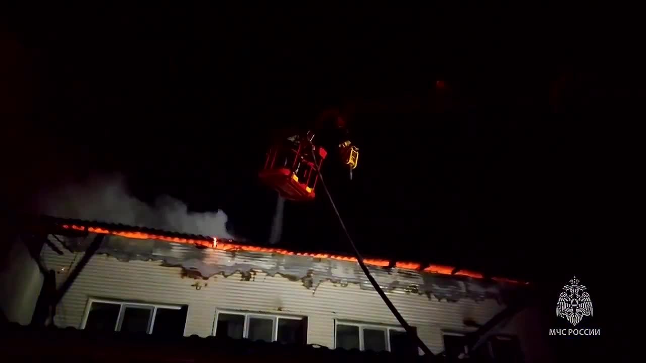 Возгорание началось со склада в здании на улице 70 лет Октября в Таксимо, затем огонь перекинулся на крышу. Внутри также находится гостиница — пожарные вывели перепуганных людей, по данным МЧС, никто не пострадал.