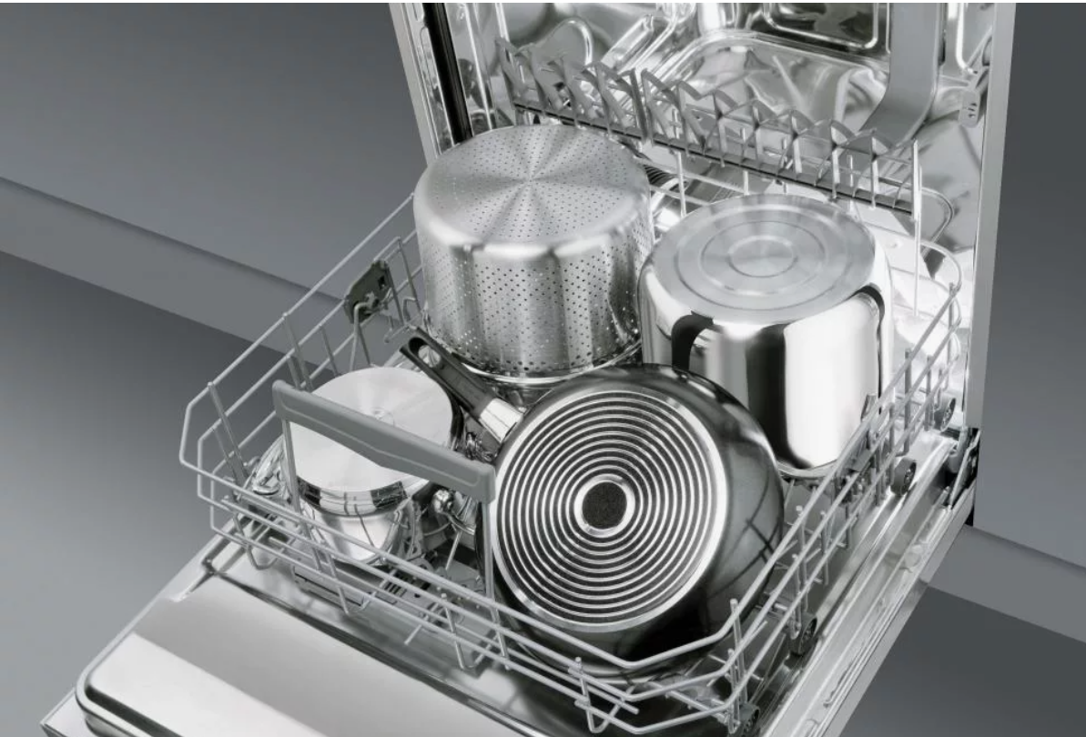 - Сильно загрязненные кастрюли размещайте вниз головой в нижней корзине.