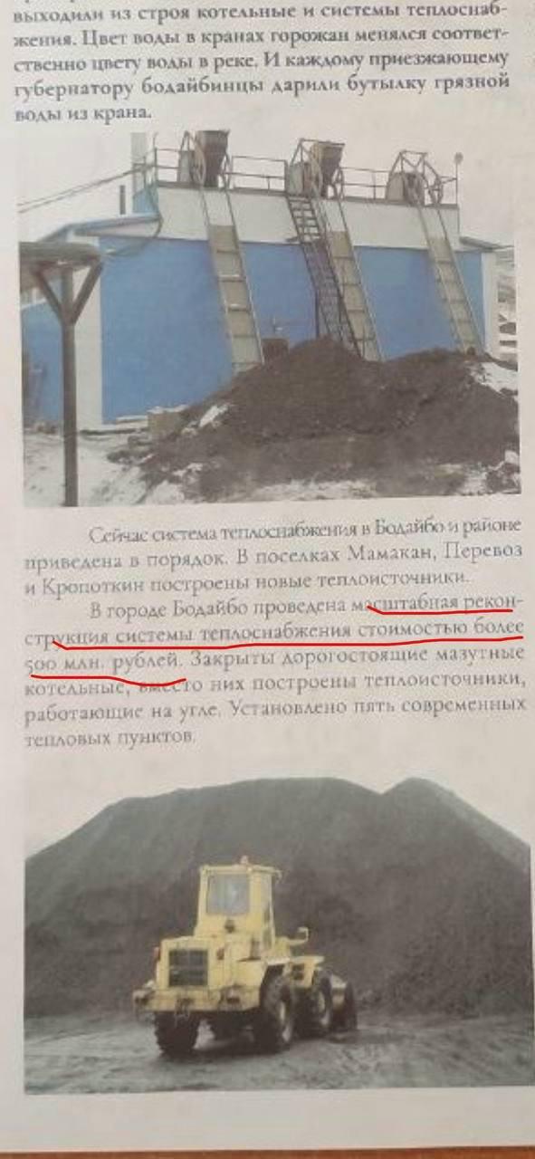 Коммунальные сети города оказались насквозь прогнившими и изношенными. А ведь всего-то три года назад «в городе Бодайбо (была) проведена масштабная реконструкция системы теплоснабжения стоимостью более 500 миллионов рублей». Это цитата из предвыборной агитки трехлетней давности кандидатов в мэры Бодайбо и района Ботвина и Юмашева. Обоих кандидатов поддержал губернатор Кобзев, оба креатуры самого смышленого кадровика - полпреда Серышева. Без его одобрения, кстати, никого на руководящие посты в Сибири не назначают. Это к вопросу об ответственности назначенцев и качеству их компетенций. Ну, да ладно.