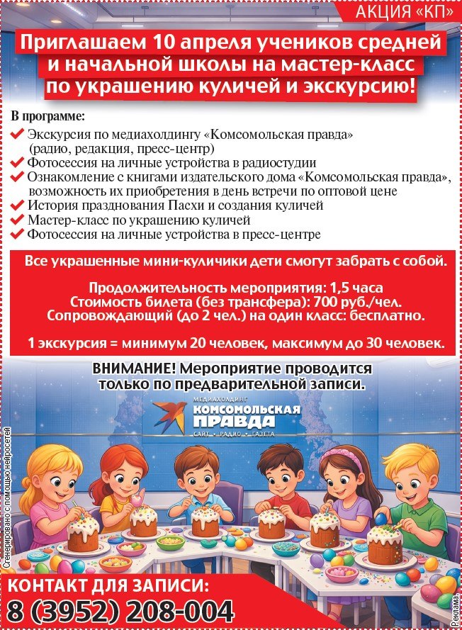 10 апреля "Комсомольская правда" приглашает школьников из Иркутска на мастер-класс по куличам и экскурсию