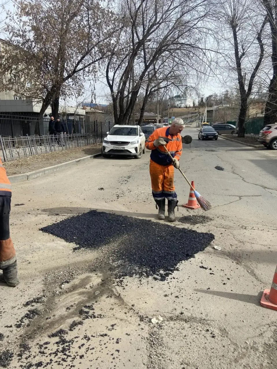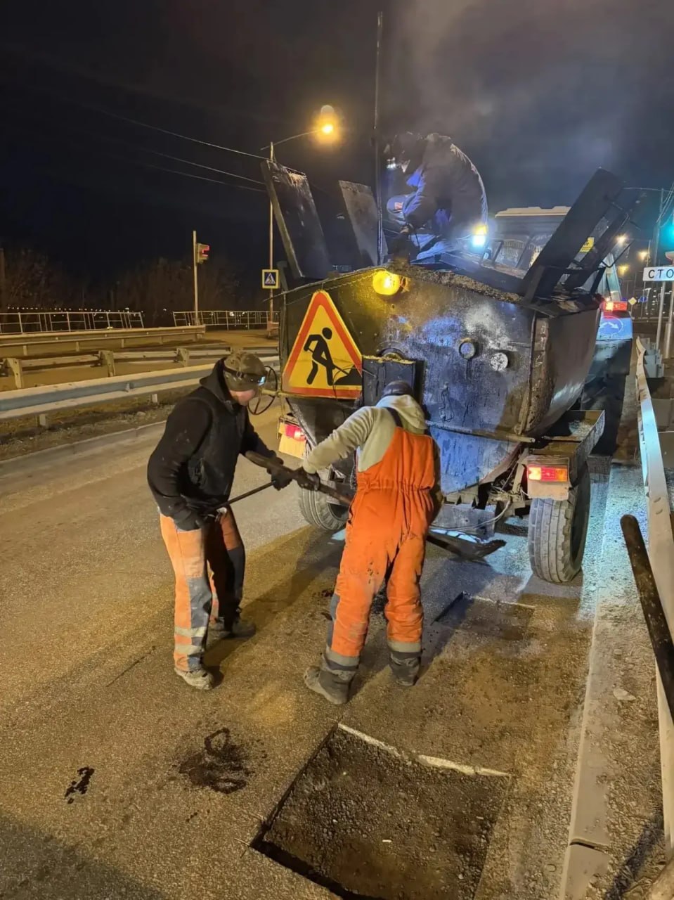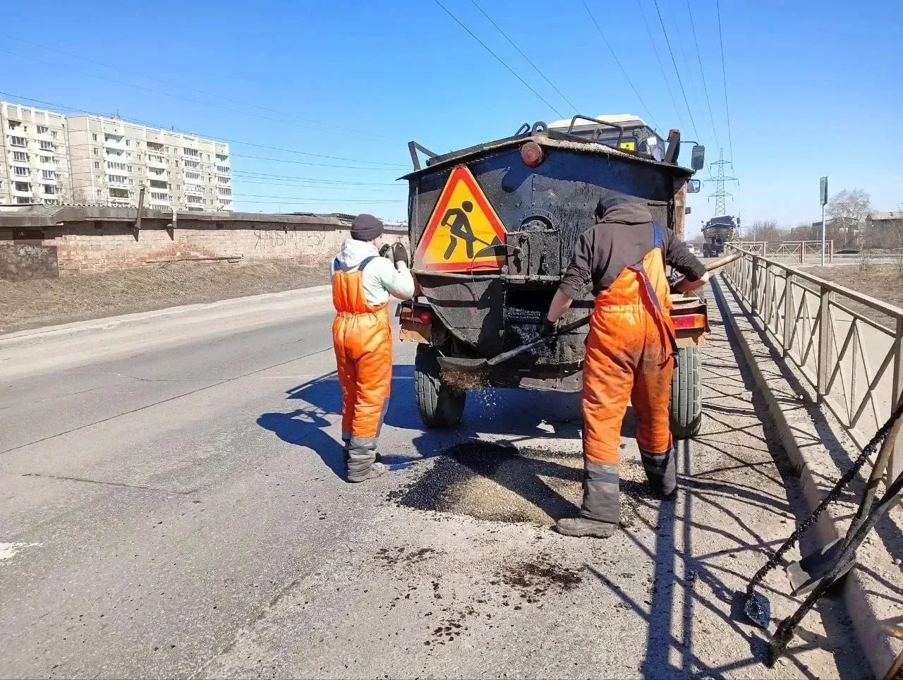 МУП «Иркутскавтодор» устраняет повреждения покрытия литым асфальтом.
