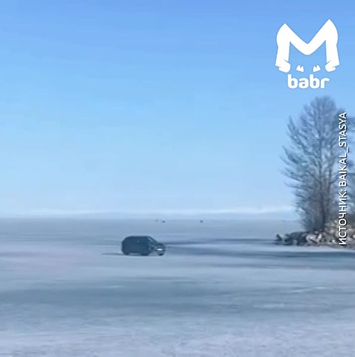 Безбашенные водилы продолжают гонять по подтаявшему Байкалу.