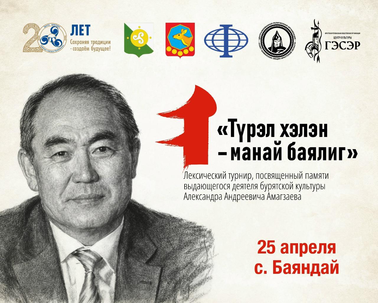 В Иркутской области впервые пройдет лексический турнир «Трэл хэлэн – манай баялиг» («Родной язык – наше достояние»). Мероприятие состоится 25 апреля 2026 года в селе Баяндай. Оно будет посвящено памяти выдающегося деятеля бурятской культуры Александра Амагзаева.