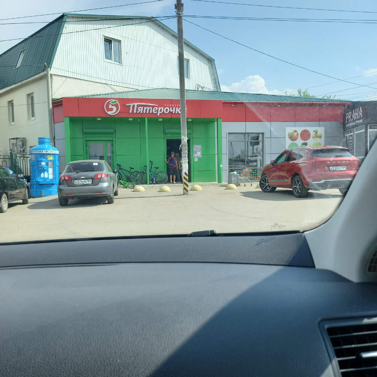 На небольшой стоянке у магазина "Пятерочка" всего три велосипеда и два самоката. Как видно, настоящей пропорции с автомобилями здесь не наблюдается. В то время как во Франции, особенно в Париже, парковки забиты велосипедами и мопедами, что демонстрирует более активный подход жителей к здоровому образу жизни.