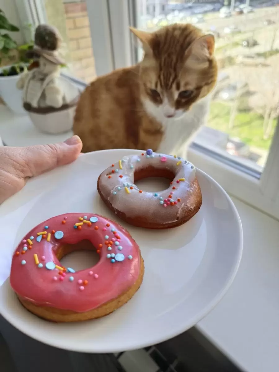 В 5:30 утра мелодичный топот маленьких лапок разбудил всех в доме. Грустная весть: Лизетт всё ещё сладко спала под одеялом. А вот Барсик, кот с шевелюрой как у истинного повара, активно брался за дело, стуча хвостом о холодильник. Словно он говорил: «Сегодня особенный день, пора готовить пончики!»
