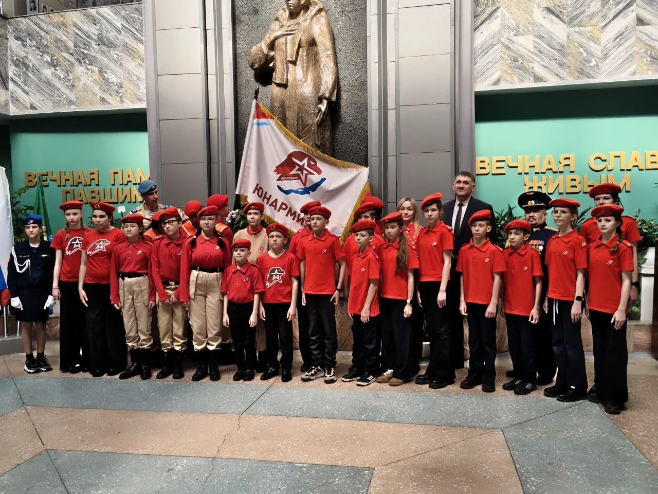 На торжественной церемонии в Музее Победы в ряды Всероссийского военно-патриотического движения «Юнармия» вступили 16 человек. Это ребята из школ № 11, 15, 27.