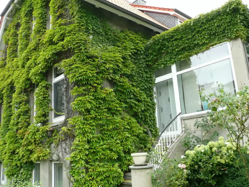 Стены, изукрашенные плющом. Хотя плющ может выглядеть привлекательно, он представляет собой агрессивное растение, которое разрушает строительные материалы и открывает путь для вредителей.