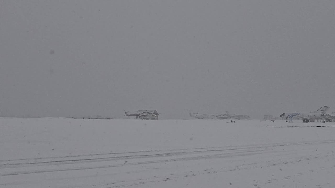 Аэропорт закрыт до 13 часов, сейчас спецтехница расчищает посадочную полосу.