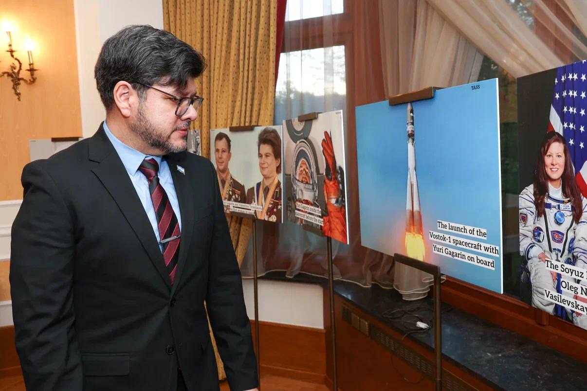 В год 65-летия исторического для всего мира события – первого полета человека в космос 12 апреля 1961 г. – у гостей была возможность ознакомиться с развернутой в Постпредстве фотовыставкой, посвященной подвигу советского космонавта Юрия Гагарина. Экспозиция, которая включала кадры подготовки и осуществления полета, а также дальнейшего пути мирного освоения космоса, вызвала живой интерес со стороны собравшихся дипломатов.