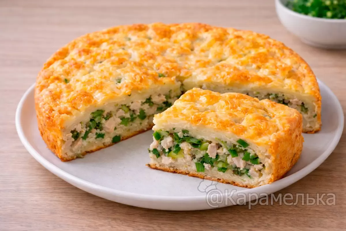 Этот рецепт станет настоящим открытием для любителей простоты и вкуса. Для его приготовления не потребуется сложных манипуляций, лишь смешайте ингредиенты, и в духовку. Готовый пирог порадует своим мягким тестом и сочной начинкой с нежным ароматом зелёного лука.