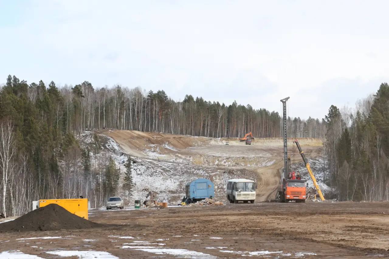 Работы начали в феврале. Сейчас расчищен участок длиной 2,5 км, выполнена рубка леса. Идёт расчистка полосы отвода, разработка выемок и отсыпка насыпи земляного полотна, устройство нижних слоев дорожной одежды. Специалисты готовят основание для монтажа арочной трубы через реку Шерагул.