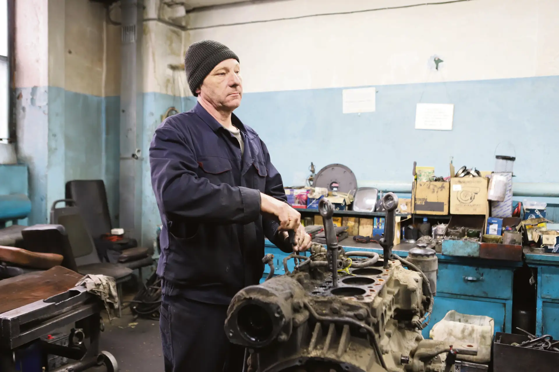 В складских помещениях приятно удивил порядок: всюду стеллажи, разметка, никакого хлама (ремонт здесь сделали в этом году). Руслан Болотов сразу поинтересовался, какие запчасти у водителей пользуются наибольшим спросом. Оказалось, детали подвески. Кстати, никаких проблем с запчастями нет: в 2025 году «Иркутскавтотранс» стал корпоративным сервисным центром ПАО «КАМАЗ», налажены надежные связи и с другими поставщиками.