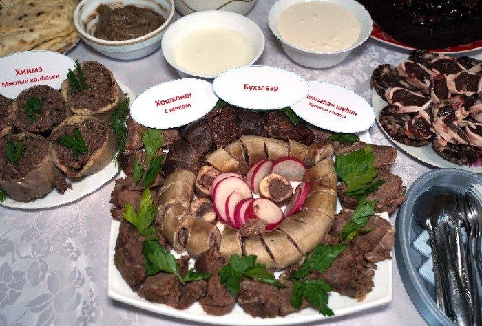 Традиционная бурятская кухня представляет собой молочные и мясные блюда, полученные от пяти видов животных, которые сопровождали кочевников всю жизнь: лошадей, овец, коз, коров и верблюдов