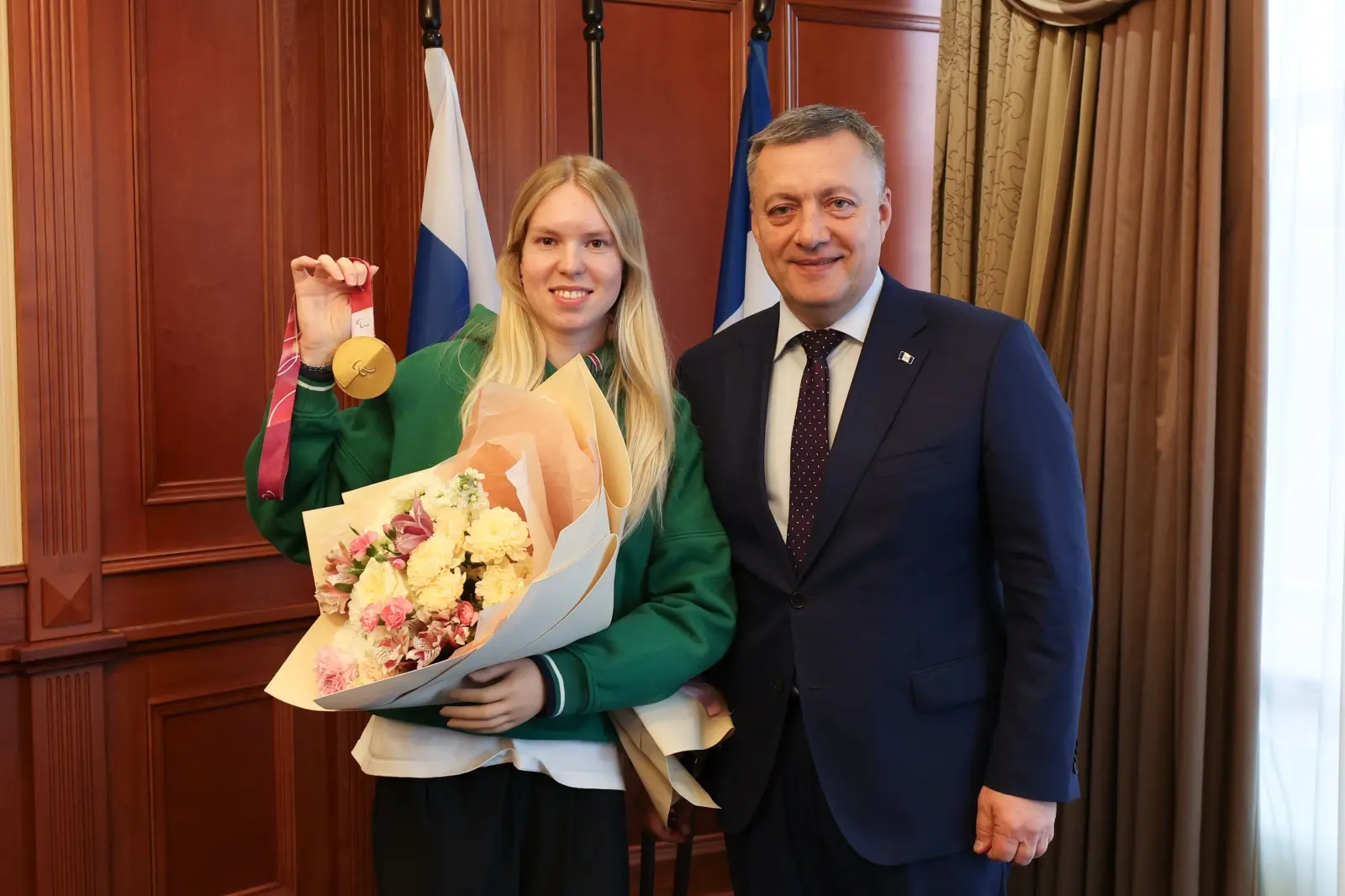Губернатор Иркутской области Игорь Кобзев встретился с уроженкой Байкальска, двукратной чемпионкой, серебряным и бронзовым призёром XIV Зимних Паралимпийских игр в Италии Варварой Ворончихиной.