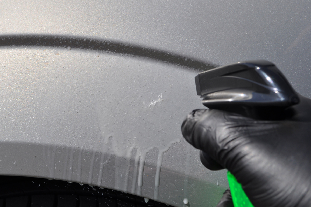 Одной лишь струей воды не обойтись: микроотложения на лакокрасочном покрытии способны удерживаться статическим электричеством. Чтобы избавиться от них, идеально подойдёт двухфазная мойка. Этот процесс состоит из двух этапов: сначала производится очистка кузова от основных загрязнений, после чего автомобиль обрабатывается щелочной пеной. Использование мягкой губки или специальной перчатки в этом этапе помогает бережно удалить оставшиеся отложения реагентов, не повредив при этом лакокрасочное покрытие.