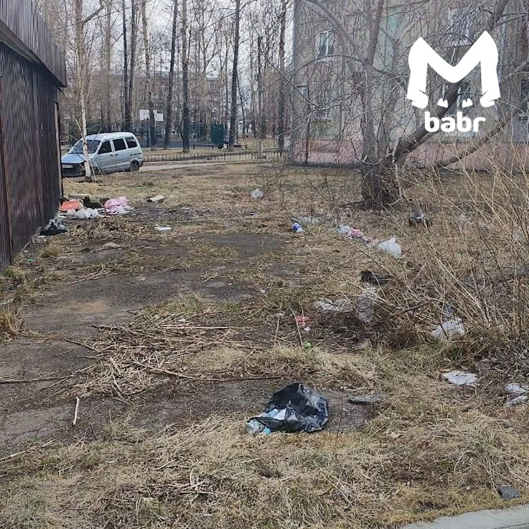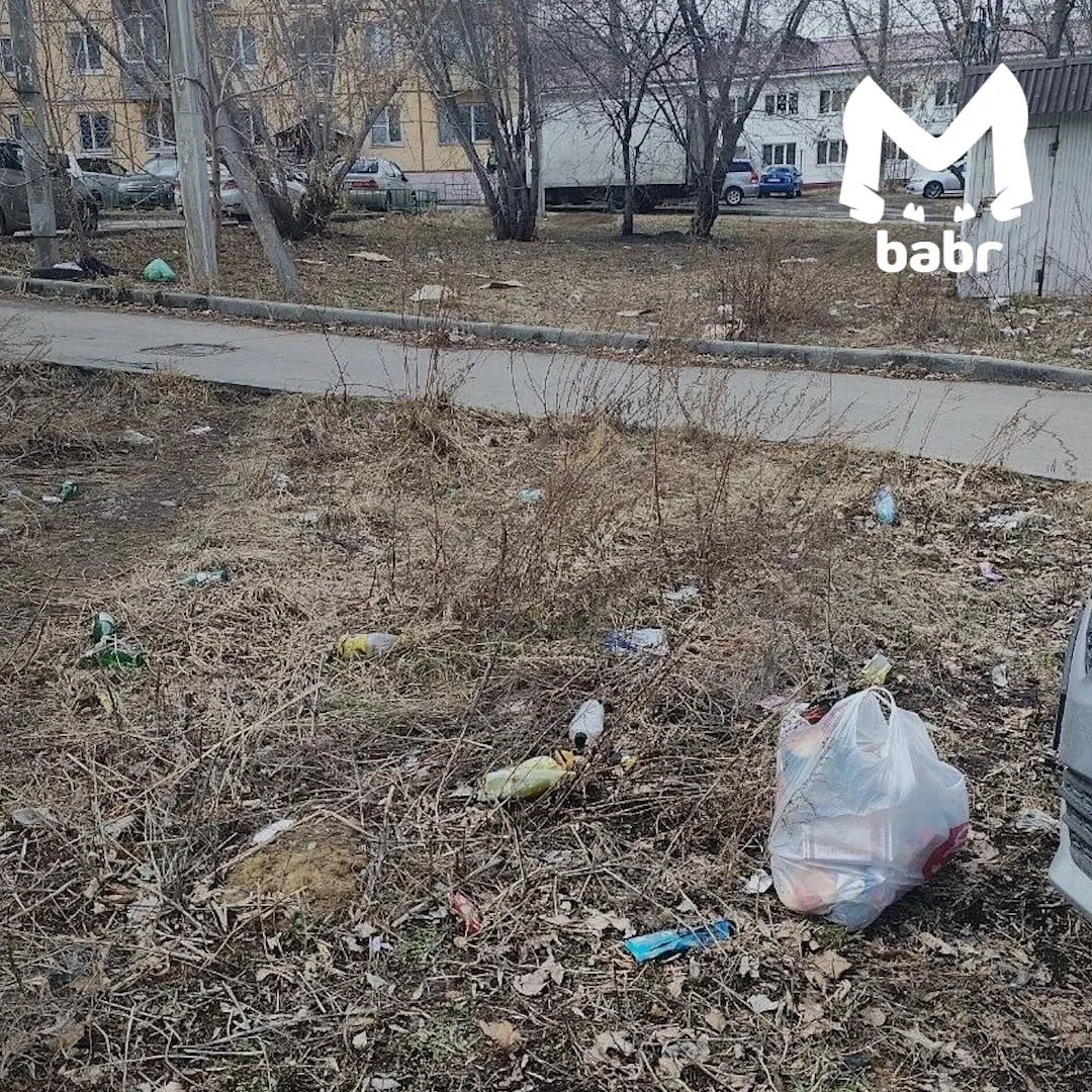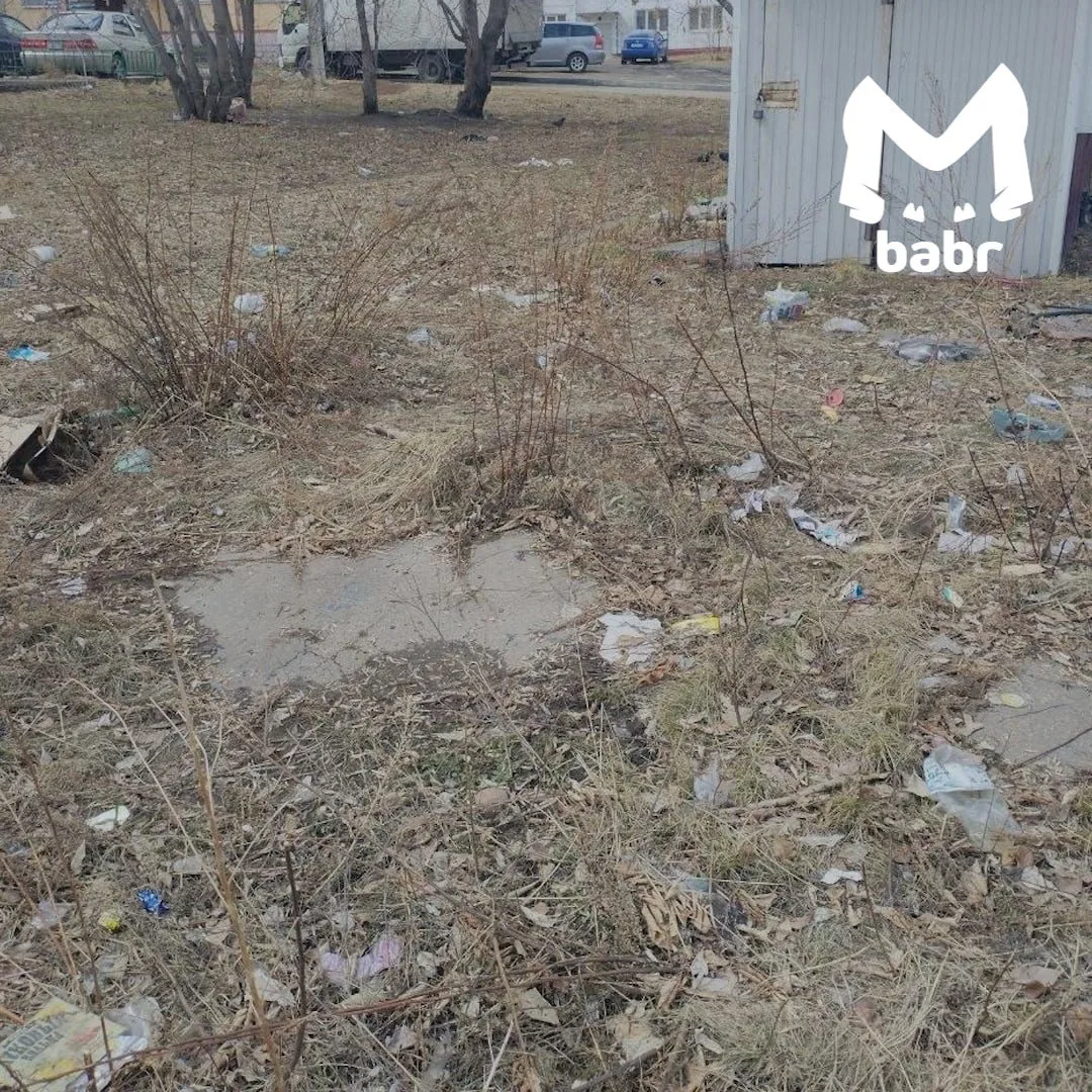 Захламлённый участок находится между домами № 235, 237 и 239 — там и пластиковые бутылки, и пакеты, и что только не. По словам местных, управляющая компания от уборки открещивается — мол, эта земля не относится к придомовой и ответственность за неё несут городские службы.