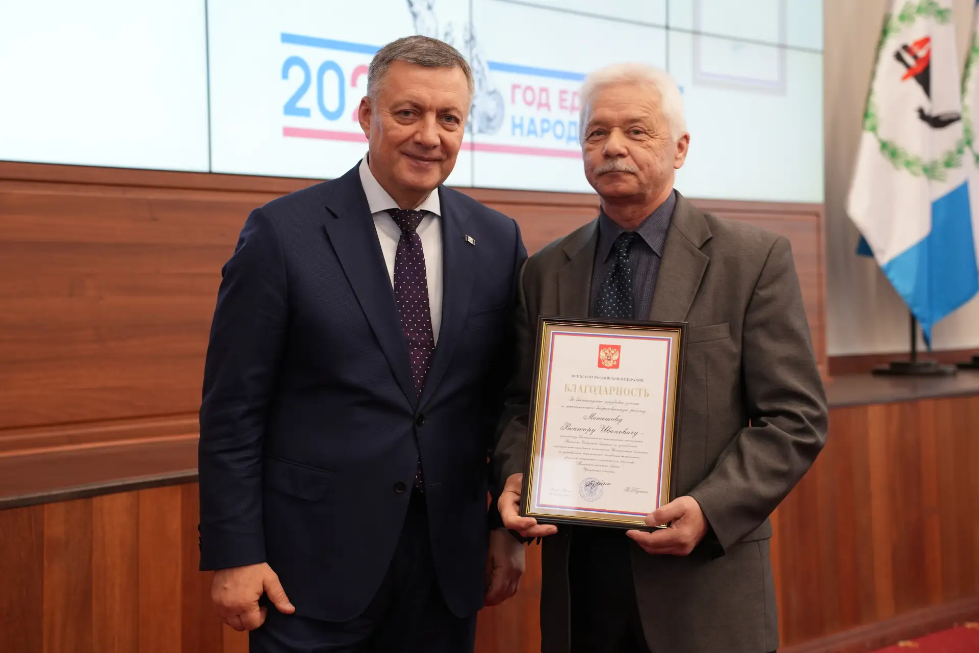 От имени Президента России Губернатор Иркутской области Игорь Кобзев вручил госнаграды жителям Приангарья