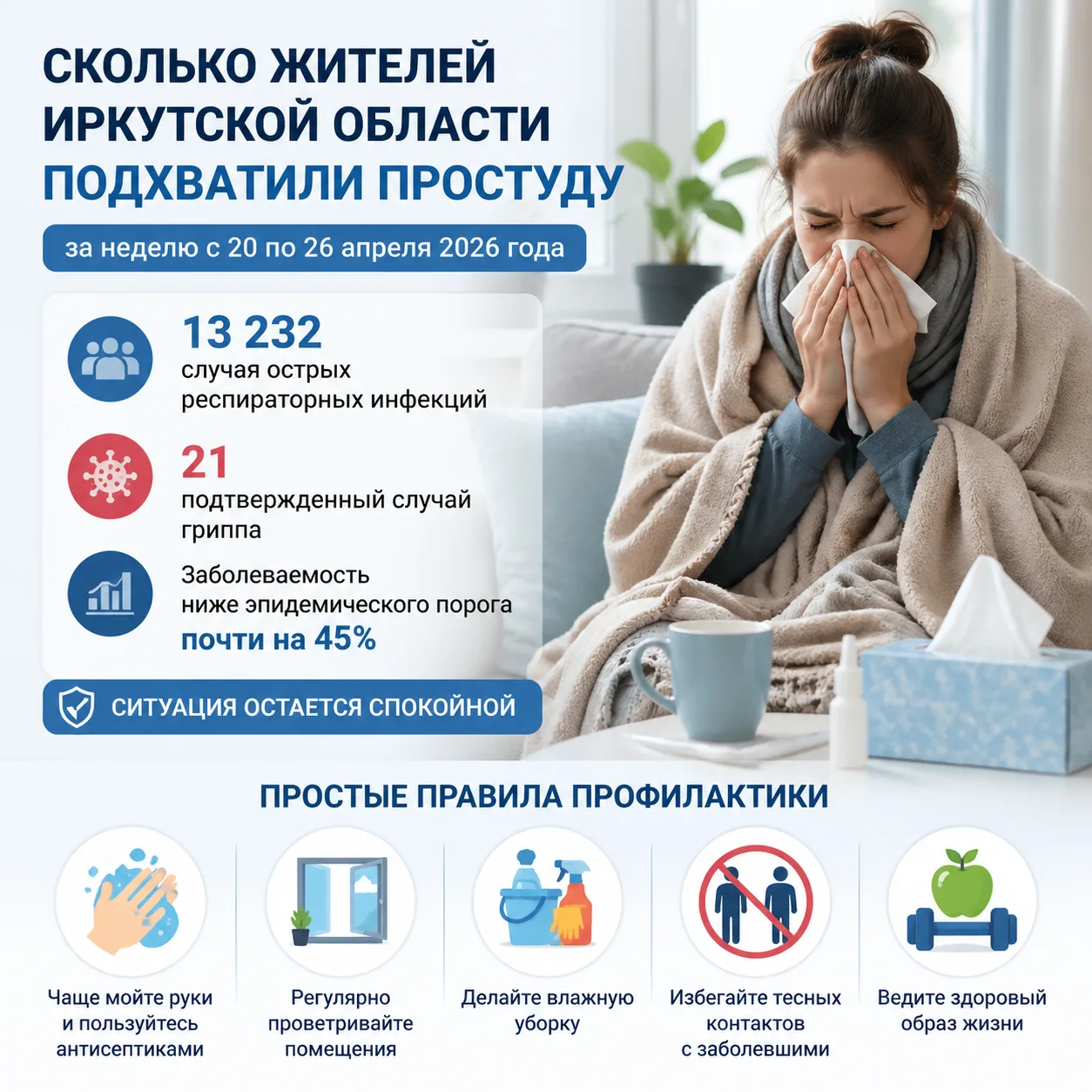 Специалисты выяснили, сколько жителей Иркутской области подхватили простуду за неделю с 20 по 26 апреля 2026 года