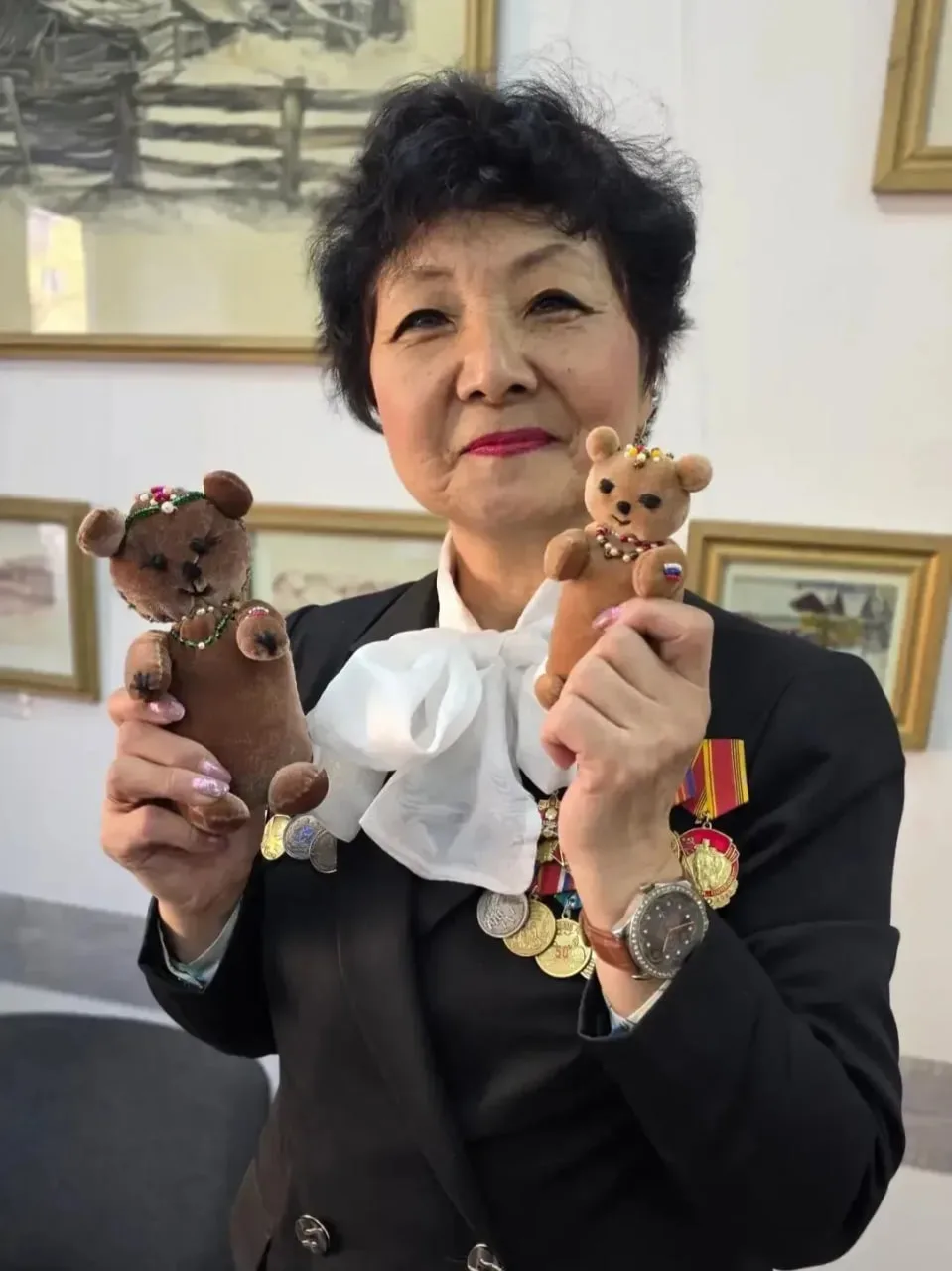 – Когда началась СВО, мы встречали первый караван морпехов из Владивостока. Они тогда приехали в Иркутск. Я начала думать, что бы такое передать бойцам. Я пошла в церковь и поговорила с батюшкой. Он сказал: «Делай то, что тебе по душе». Он не подсказывал, но дал напутствие. Я пришла домой и перебрала все символы. Подумала, что флаги не подойдут. А вот мишка – то, что надо – это и есть символ России. Я взяла этот символ за основу и начала шить. Муж говорит: «У тебя не получится». Я говорю: «Давай попробуем». Сначала я вырезала по шаблону. Но поняла, что что-то не получается. Бросила. А потом думаю: «Я сама попробую, без шаблона». И всё получилось. Я быстро сшила, не стала сильно украшать, на лапку только вышила флаг России. Я подарила этих мишек морпехам. В итоге на передовой мишки оказались прямо нарасхват. Руководитель говорит, что просто не ожидал такого.