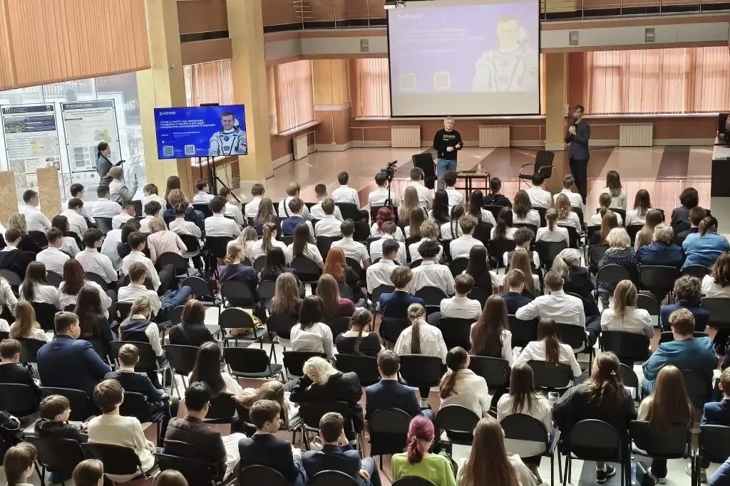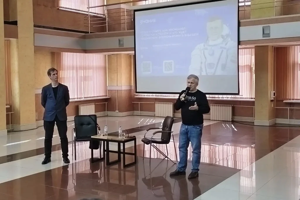 Андрей Борисенко поделился с юными слушателями подробностями о подготовке к полетам, работе на МКС, быте космонавтов и научных экспериментах в условиях невесомости.